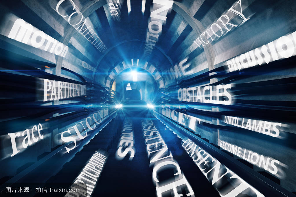 Abstract image of motivational word tunnel on dark background. Encouragement concept. 3D Rendering